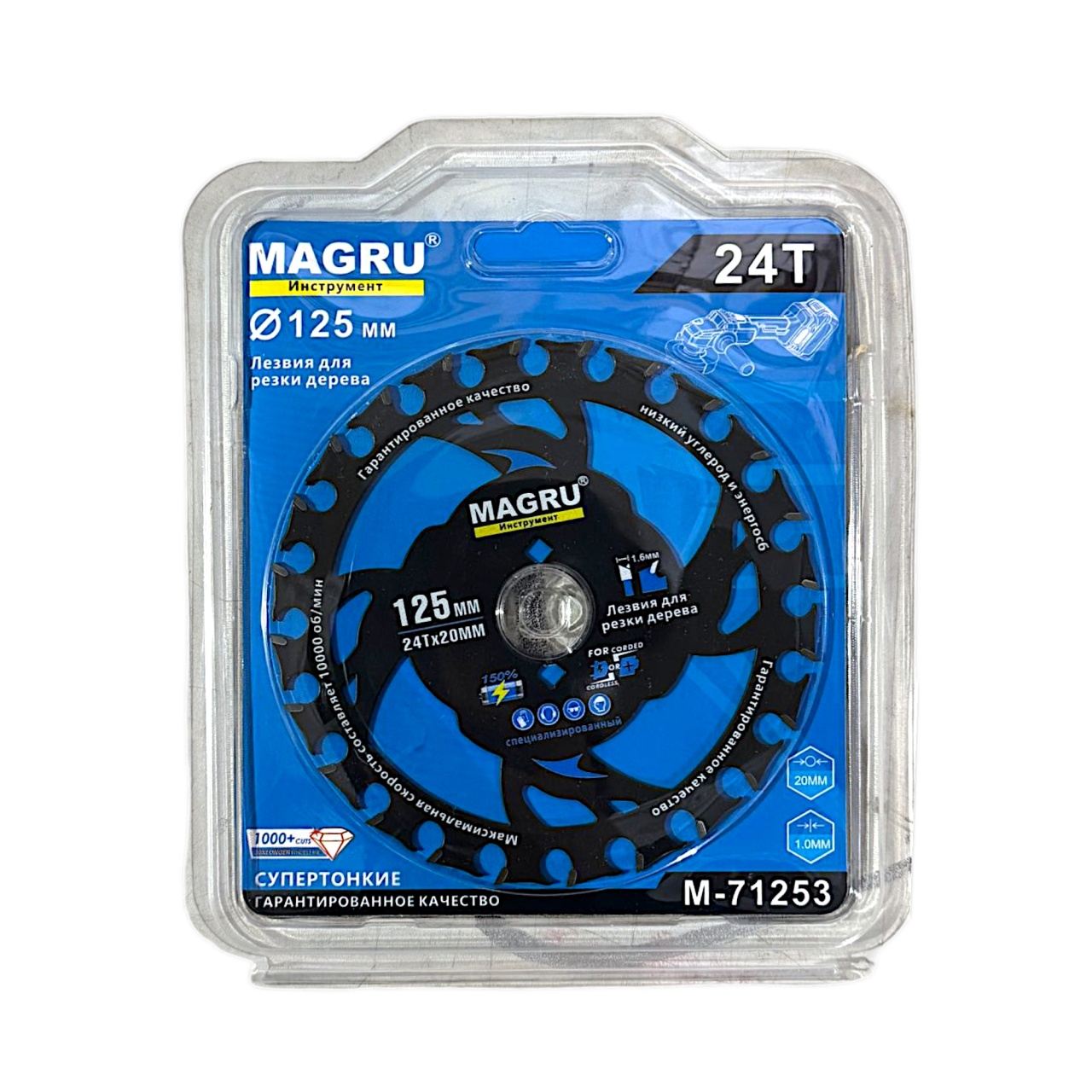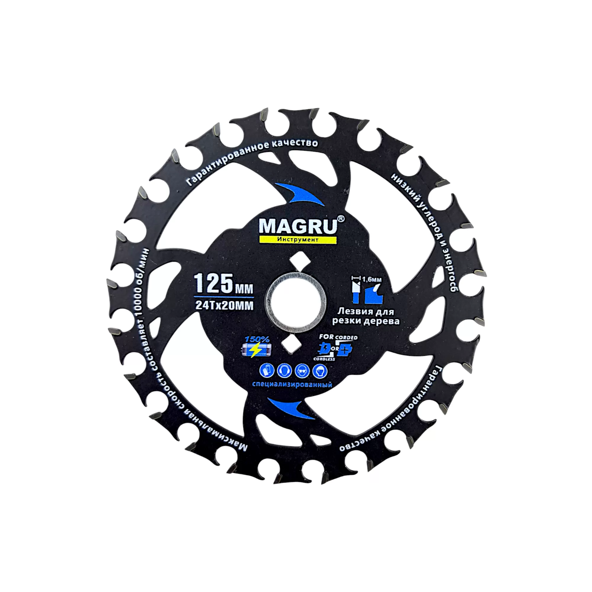 Супер тонкий пильный диск по дереву 125 мм с 24 твердосплавными зубьями, приваренными к стальной основе, выпускается специально для использования с циркуляркой. Эффективные энергосберегающие лезвия