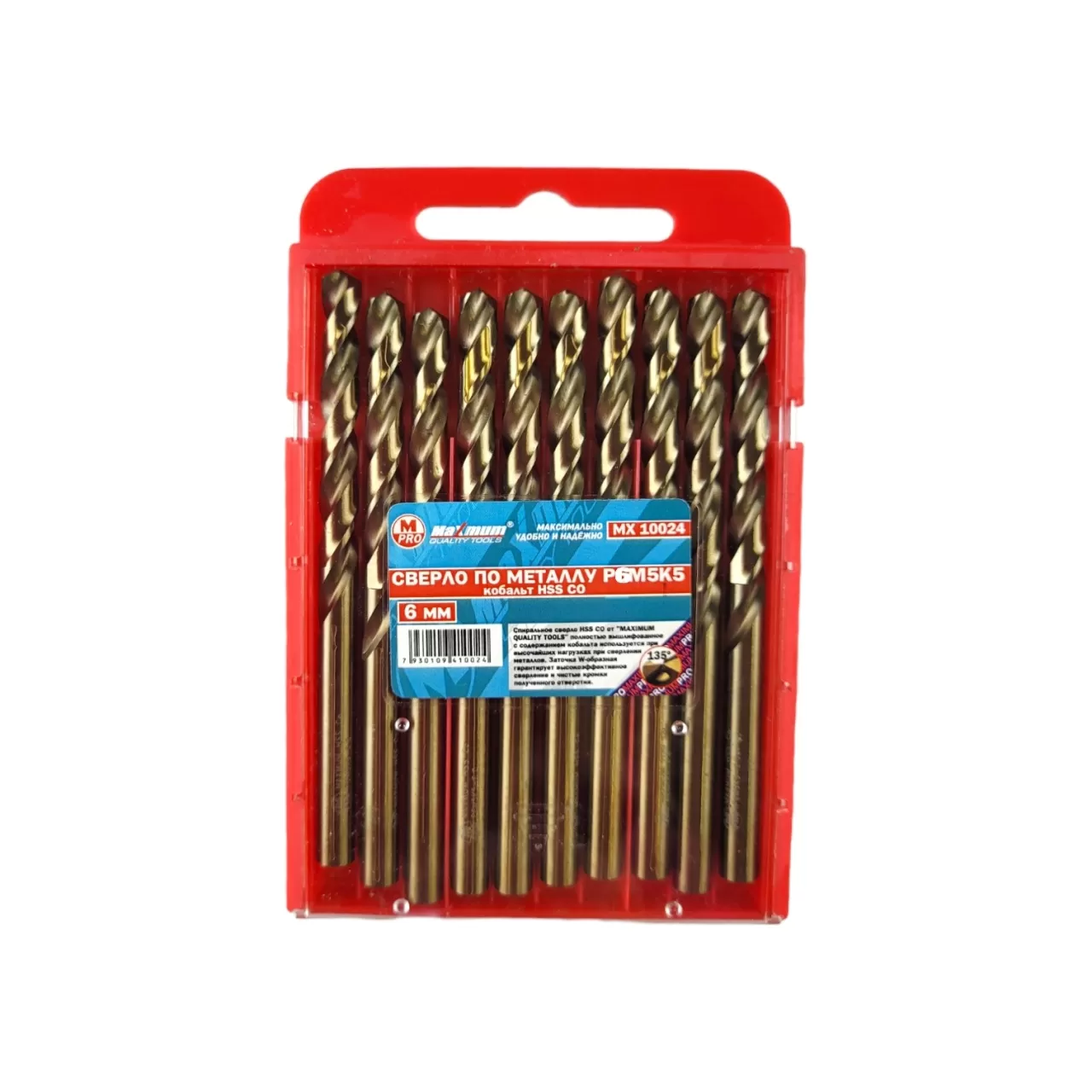Набор сверл CO HSS поставляется по 10шт. в удобном пластиковом кейсе.